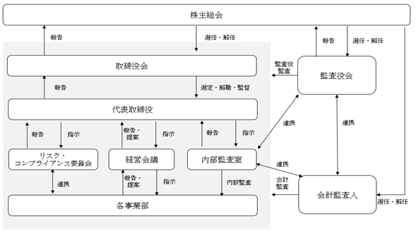 社外取締役は、取締役会を通じて内部監査の状況、会計監査の状況及びその結果について適宜報告を受け、必要に応じて説明を求めること等により、経営監督機能としての役割を担っております。社外監査役は、取締役会及び監査役会において、専門知識及び豊富な経験に基づき意見・提言を行っております。また、常勤監査役は、社内の様々な部門に対してヒアリングを行い内部統制に関する指摘・指導を行っており、会計監査人及び内部監査室長と定期的に打ち合わせを開催し、三者間の意見交換を行うこと等により、業務の適正性の確保に努めております。