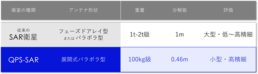 SAR衛星とは、Synthetic Aperture Rader(和:合成開口レーダー)と呼ばれるリモートセンシング技術を利用した、地球観測のための人工衛星です。SAR衛星は、衛星自身が観測地点に対して電波を発射し、反射した電波によって対象物の大きさや表面の性質、距離等を測定します。観測地点からの太陽光の反射に頼らないSAR衛星は、天候や時間帯に左右されることなく常時地球を観測できる大きな利点を持ちます。その一方で、SAR衛星は電波の送受信に大量の電力消費と大きなアンテナを要するため小型化と解像度はトレードオフの関係にありました。