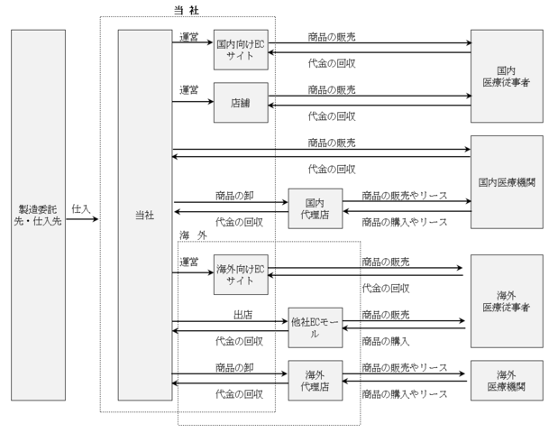 国内向けとして、当社直営のECサイトである公式オンラインストアを運営しており、エンドユーザーである医療従事者へ直接販売を行っております。