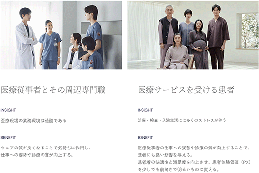 医療従事者が着用するメディカルアパレルの特徴は、病院の洗濯を請け負う専門業者が、高温での滅菌処理やプレス等の工業用洗濯を行うため、一般的なアパレル素材では耐えられず、工業用洗濯に耐えうる素材開発・商品開発が求められます。