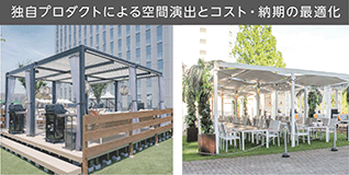 屋外空間における企画提案から設計施工を行う「空間創造事業」、輸入による独自ルートからの商品仕入、オリジナル商品の提供が可能な「DEPOS事業」を有しており、両事業の強みを活かした企画提案を行っております。