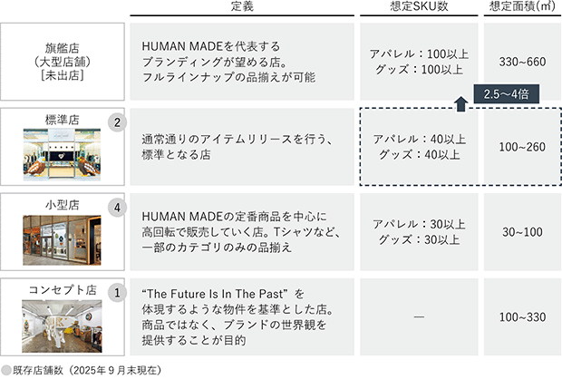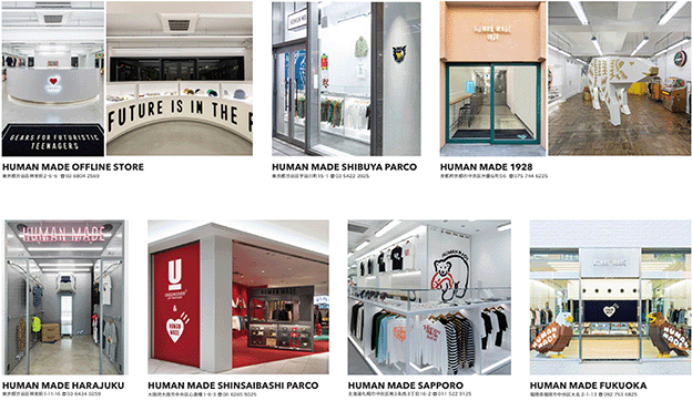 「HUMAN MADE」ブランドの店舗として、日本国内においては、東京都内に3店舗、札幌・京都・大阪・福岡に1店舗ずつ、合計7店舗出店しています。同チャネルは「HUMAN MADE」の世界観を顧客に体験していただき、既存顧客を維持し、新規の顧客にファンになっていただく重要なチャネルと位置付けています。