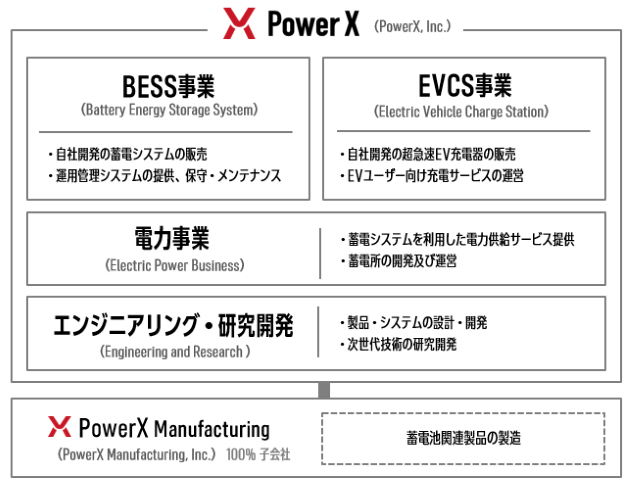 当事業は、蓄電池型急速EV充電システム「PowerX Hypercharger」の顧客への販売、メンテナンス及び「PowerX Hypercharger」を利用したEVユーザー向け充電サービス「PowerX Charge Station」を展開しております。
