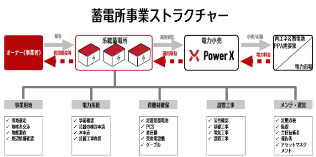 当事業は、蓄電池を使ったオフサイトPPA(電力の需要家が、需要場所外に発電設備を確保して再生可能エネルギーを調達するスキーム)である「X-PPA」をはじめとした蓄電池を利用した電力供給サービス及び蓄電所の開発、運営サービスを展開しております。