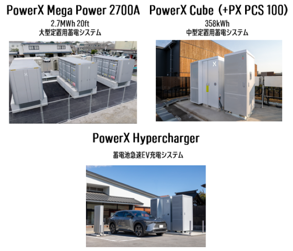 当事業は、主に大型定置用蓄電システム「PowerX Mega Power」、中型定置用蓄電システム「PowerX Cube」の販売及びメンテナンスを行っております。「PowerX Mega Power」は、2.7MWhの大容量となっており、発電所等における電力の発生から消費に至る一連の電力供給システムに接続する電力系統用、自社拠点に設置して利用する産業・商業用のどちらにも利用可能で、再生可能エネルギーの有効な活用を可能とします。「PowerX Cube」は、産業用及び商業用に設計された中型の定置用蓄電池で「PowerX Mega Power」よりも設置面積が小さく、さまざまな用途に展開できます。また、当社のBESS事業では、バッテリー貯蔵システム(ESS)、パワーコンディショナー(PCS)、変圧器(TR)、パワー管理システム(PMS)、エネルギー管理システム(EMS)、アグリゲーション・コーディネーター(AC/RA)などの、周辺インフラからエネルギーソリューションを含めた製商品及びサービスをラインナップしております。