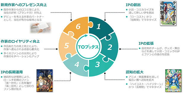 当社は、IPを「創る・届ける・育てる」という循環を通じて、IP価値を継続的に高める収益モデルを構築しております。創出したIPは、小説、コミック、アニメ、舞台、グッズ等へと展開することで接点を広げ、認知の拡大を図っております。