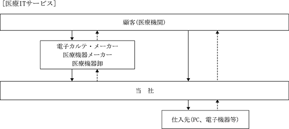 医療ITサービスにおける受注形態は、医療機関からの直接受注に加え、協業する電子カルテメーカーや医療機器メーカー等からの引き合いによる受注で構成されております。既存顧客を基盤とした継続的な取引を重視し、機器入替や追加システム導入等の需要を的確に捉えることで、安定的な受注獲得につなげております。当社では、これらの受注経路の特性を踏まえ、継続性及び収益性の確保を重視した顧客基盤の構築を進めております。